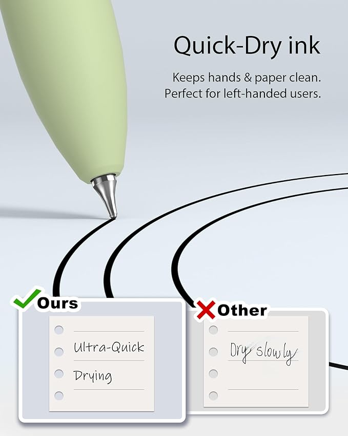 - Quick-Dry Long Lasting Ink:0.7mm black ink can slide effortlessly, dry immediately, & is not easily dirty. It has a high-capacity reservoir (up to 2,296 Feet ), which is very suitable for left-handed & right-handed users.