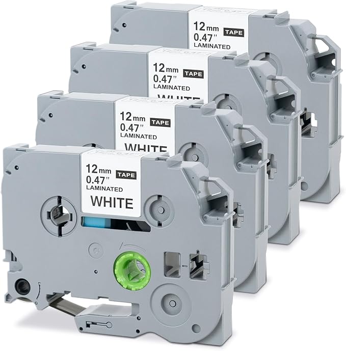 12mm 0.47 Laminated White Tape P Touch Compatible with Brother TZ-231 Tze231 TZ231 for P Touch D220, PTD210 PTH110, Tze TZ Tape 1/2Inch (4 Packs)